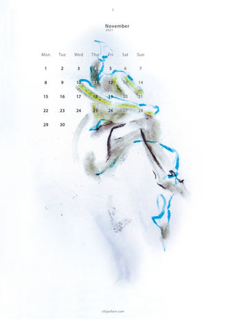 Jan Farn designed this EXERCISING Calendar with selected 12 drawing that she enjoyed from 2019 to 2020. The series [EXERCISING] was all created by depicting living bodies' movements.